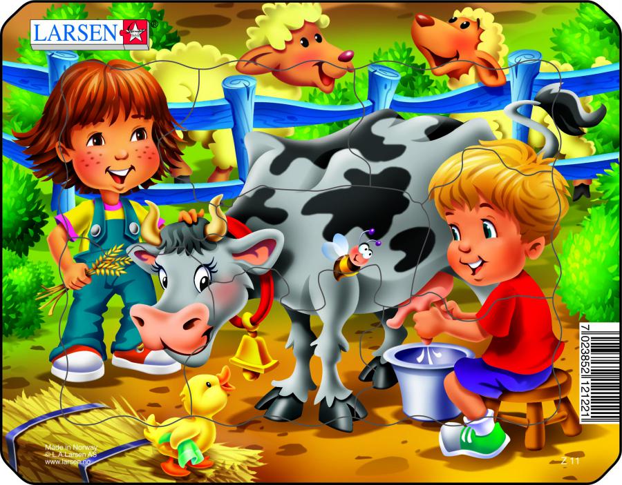 Пазл для самих маленьких. Познайомся з тваринами, які живуть на фермі. Він навчить дитину не тільки складати з частин ціле, а ще дасть можливість завдяки оригинальныму элементаму у формі Носорога обвести силует на аркуші паперу і намалювати.Барвисті пазли Larsen Z11-3 серії Мультфільмів для маленьких дітей від 3-х років, кількість елементів - 9, розмір в зібраному вигляді - 18,3*14,3 див., матеріал - товстий картон