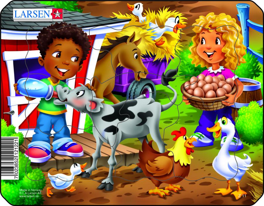 Пазл для самих маленьких. Познайомся з тваринами, які живуть на фермі. Він навчить дитину не тільки складати з частин ціле, а ще дасть можливість завдяки оригинальныму элементаму у формі Дельфіна обвести силует на аркуші паперу і намалювати.Барвисті пазли Larsen Z11-4 серії Мультфільмів для маленьких дітей від 3-х років, кількість елементів - 9, розмір в зібраному вигляді - 18,3*14,3 див., матеріал - товстий картон