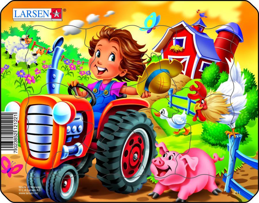Пазл для самих маленьких. Познайомся з тваринами, які живуть на фермі. Він навчить дитину не тільки складати з частин ціле, а ще дасть можливість завдяки оригинальныму элементаму у формі Зайчика обвести силует на аркуші паперу і намалювати.Барвисті пазли Larsen Z11-2 серії Мультфільмів для маленьких дітей від 3-х років, кількість елементів - 9, розмір в зібраному вигляді - 18,3*14,3 див., матеріал - товстий картон