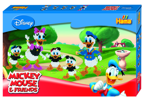 Захоплююча термомозаіка Hama подарує Вашій дитині багато радості і користі від розвитку дрібної моторики Ліцензійна серія героїв діснеївських мультфільмів. Діснеївські каченята - Дональд Дак, Поночка і малюки Біллі, Віллі і Діллі Дак. Використовуючи форми, намистини і кольорові схеми, створіть яскраві фігурки героїв діснеївських мультфільмів. Складання картинок з мозаїки сприяє розвитку творчих здібностей, дрібної моторики, концентрації уваги, посидючості й акуратності.Набори серії MIDI з намистин діаметром 5 мм користуються величезною популярністю як у дітей, так і дорослих. Форми можуть використовуватися кілька разів. В комплекті: 2 кольорові схеми, папір для термомозаики, інструкція