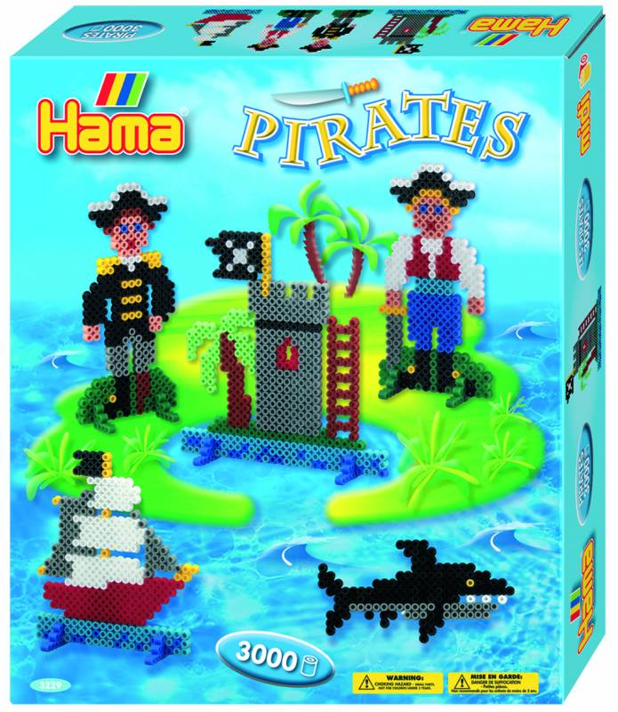 Захоплююча термомозаіка Hama подарує Вашій дитині багато радості і користі від розвитку дрібної моторики Пірати, вітрильники, сторожові вежі - створюй і бийся. Набори серії MIDI з намистин діаметром 5 мм для дітей від 5 років, користуються величезною популярністю як у дітей, так і дорослих. Поля для термомозаики можуть використовуватися кілька разів. В комплекті: 8 підставок для фігур, кольорова схема, папір для термомозаики, інструкція