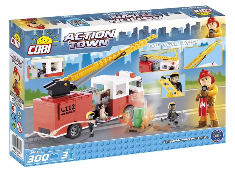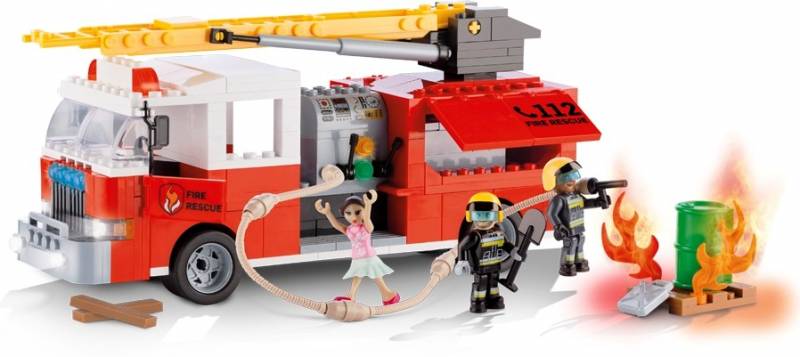 Легосовместимый конструктор серии Action Town Cobi -1465, производства Польша, количество элементов - 300, количество фигурок - 3, для ребенка от 6-ти лет, размер упаковки 36*5,5*24см.Даже самым лучшим пожарным нужен хороший и быстрый пожарный автомобиль. Без него, никакое спасение будет невозможно. Посмотрите, как быстро с ним, вы потушите огонь! При тушении пожара важно скорость и хорошее оборудование. В вашем распоряжении есть: раздвижная лестница установленная на опору, машина с открывающимися бортами с емкостями для воды, специальные шланги с кранами. Біля пожежної машини відкриваються двері і складаються дзеркала. Серед аксесуарів ви знайдете: лопату, каністру, бочку і дві дошки. В набір входить 300 цеглинок Cobi і 2 фігурки пожежних і потерпіла дівчина.