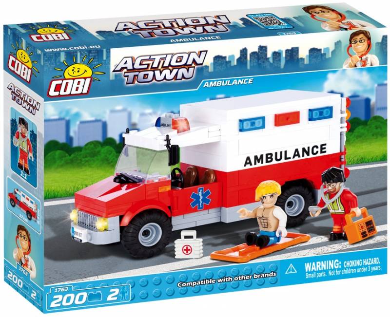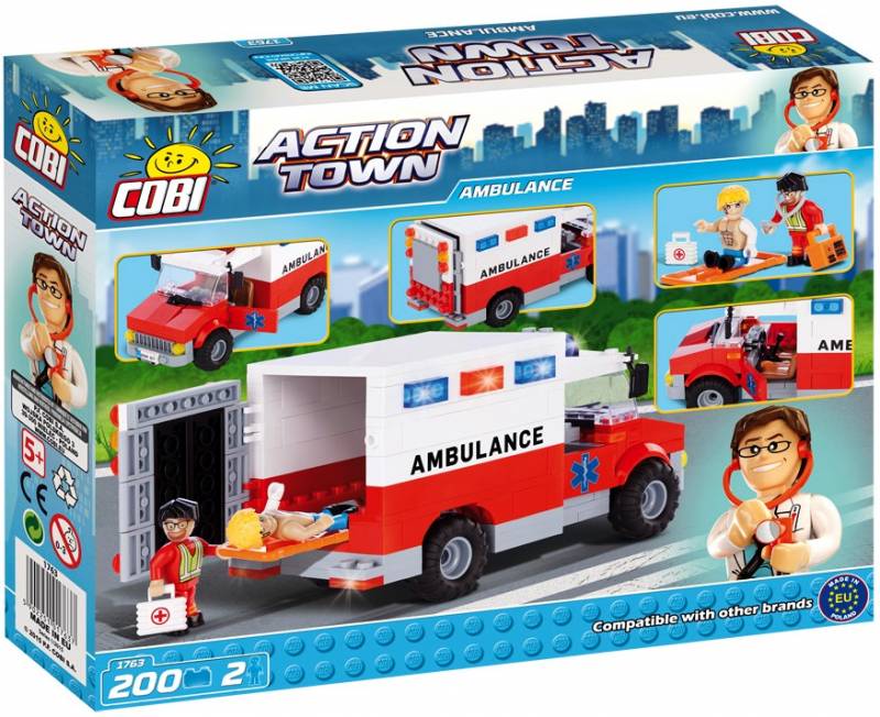 Легосовместимый конструктор серии Action Town Cobi -1763, производства Польша, количество элементов - 200, количество фигурок - 2, для ребенка от 6-ти лет, размер упаковки 28*5,5*22см.Срочно нужна помощь! Скорая очень быстро приезжает к месту происшествия, чтобы мгновенно транспортировать пациента в больницу. Не теряйте времени! Постройте свою скорую, и в вашем распоряжении будут носилки для транспортировки пациента, аптечка и реанимационное оборудование. Для улучшения работы скорой помощи фельдшер открыл заднюю дверь и кабину водителя. В набір входить 200 цеглинок Cobi і 2 фігурки лікаря і пацієнта.