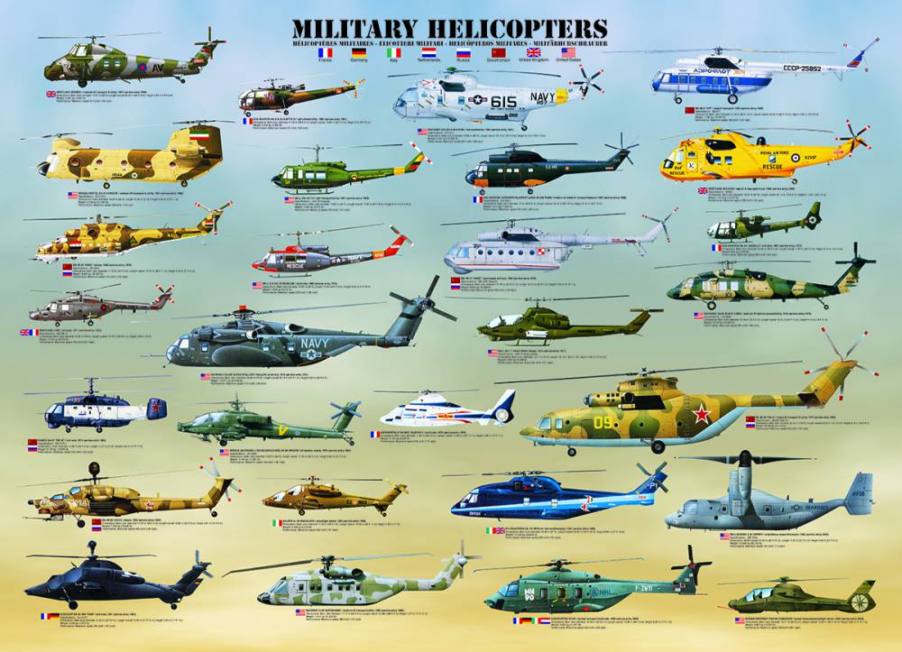 25 найпопулярніших військових вертольотів, у тому числі Eurocopter Tiger, Comanche і Chinook цей пазл порадує любителя повітроплавної техніки!