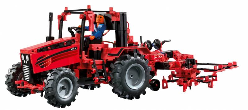 Конструктор для ребенка от 7 , количество моделей - 8, количество деталей - 660, сделано в Германии. Набор для конструирования сельскохозяйственных машин. Из набора можно собрать один трактор и семь действующих вспомогательных агрегатов. С помощью 4-х канального пульта дистанционного управления можно изменять скорость движения трактора и поворачивать колеса. Первые конструкторы fischertechnik появились в продаже более сорока назад и их популярность продолжает расти с каждым годом. Моделі fischertechnik неодноразово удостоювалися престижних міжнародних нагород (Best Toy, Oscar du Jouet, Game of the Year). У моделей fischertechnik є власний фан-клуб, членами якого є понад 30000 чоловік по всьому світу.