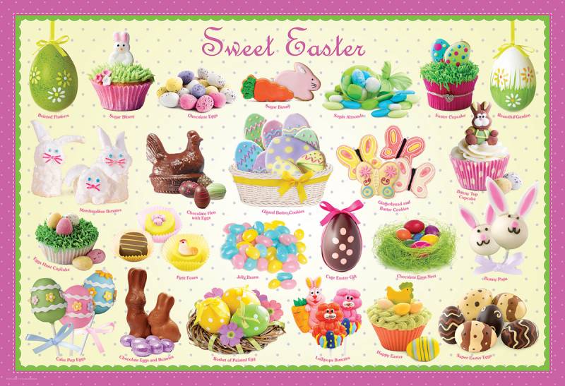 Якісні пазли для дітей EuroGraphics 6100-0541. Представлений прекрасний асортимент Великодніх частувань! Рецепти на звороті коробки. Барвисті пазли Eurograhics це прекрасний спосіб провести час у колі сім'ї та скласти захоплюючу головоломку. Якщо скріпити пазл спеціальною плівкою (8955-0101) ви отримаєте чудову картину якої можна прикрасити кімнату. На думку психологів, збирання пазла сприяє розвитку образного й логічного мислення, довільної уваги, сприйняття, вчить правильно сприймати зв'язок між частиною і цілим, розвивають дрібну моторику.