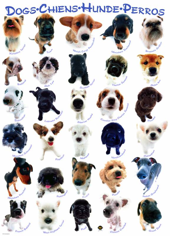 Якісні пазли EuroGraphics 8500-1510, На цьому пазлі представлено понад 20 порід собак