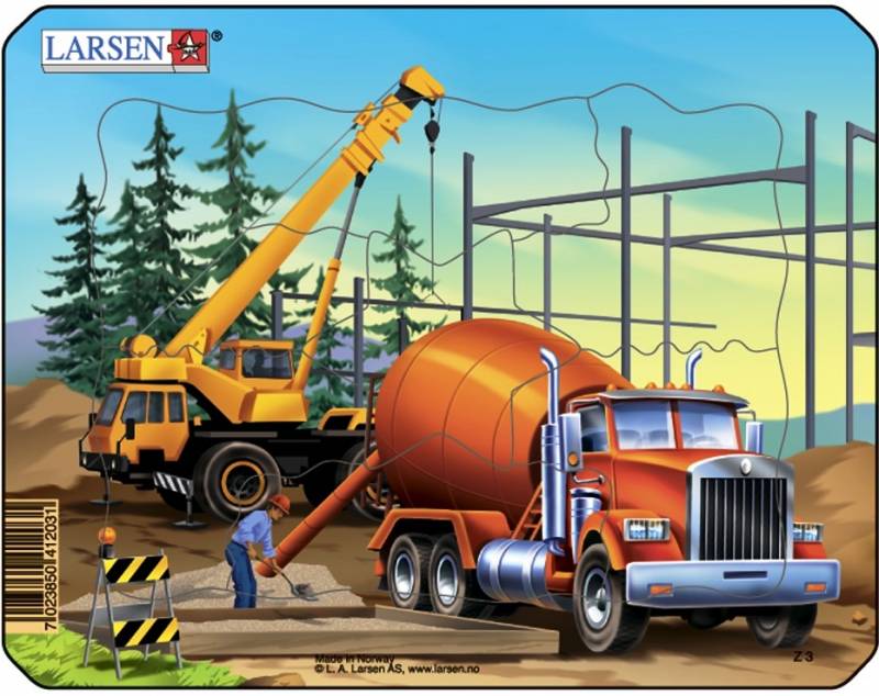Пазли для маленьких дітей від 3-х років, кількість елементів 7, вони виконані у вигляді різних фігурок, а рамка-вкладиш має відповідну насічку, серія Техніка, розмір в зібраному вигляді 18,3*14,3 див. Барвистий пазл допоможе вашій дитині познайомитися з технікою. Бетономішалка - це вантажний автомобіль, обладнаний обертається ємністю для перевезення бетону. Складаючи пазл, зверни увагу на обрис елементів - можливо, ти впізнаєш знайомі предмети.