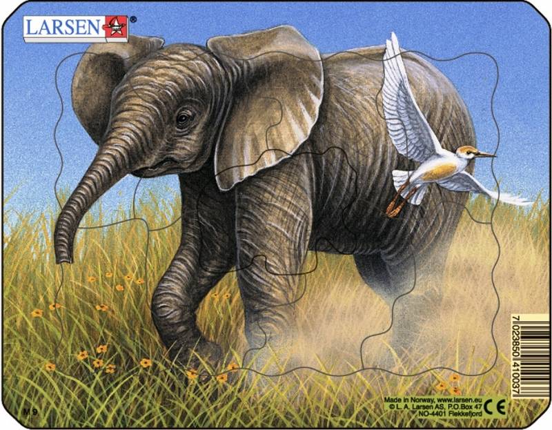 Познайомся з тваринним світом. Незвичайні елементи пазла допоможуть дитині не тільки навчитися складати зображення слоненяти, але і дізнаватися тварин за обрисами.
