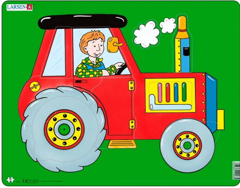 Пазли для маленьких дітей від 3-х років, кількість елементів 10, вони виконані у вигляді різних фігурок, а рамка-вкладиш має відповідну насічку, серія Мультфільми, розмір в зібраному вигляді 36,5*28,5 див. Цей пазл для самих маленьких, але дуже допитливих дітей. 10 елементів пазла дадуть можливість побудувати яскравий і веселий трактор.