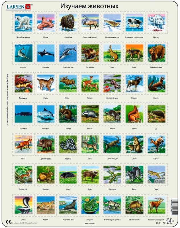 Перед вами зображення 49 тварин північної півкулі. Кожен елемент пазла має унікальну форму і може зайняти тільки призначене йому місце. Склади правильно пазл і ти дізнаєшся назви деяких мешканців північної півкулі.