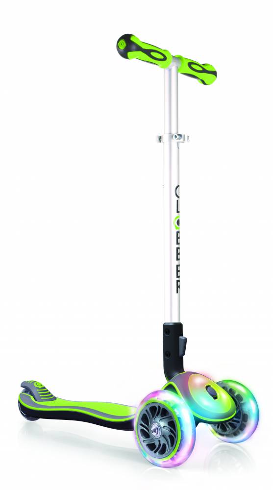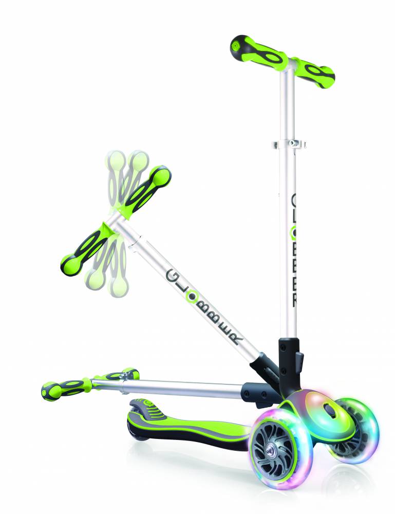 3-х колісний самокат, з функцією фіксації передніх коліс. Сяючі передні колеса і передня панель. Інноваційні самокати французької торгової марки Globber.